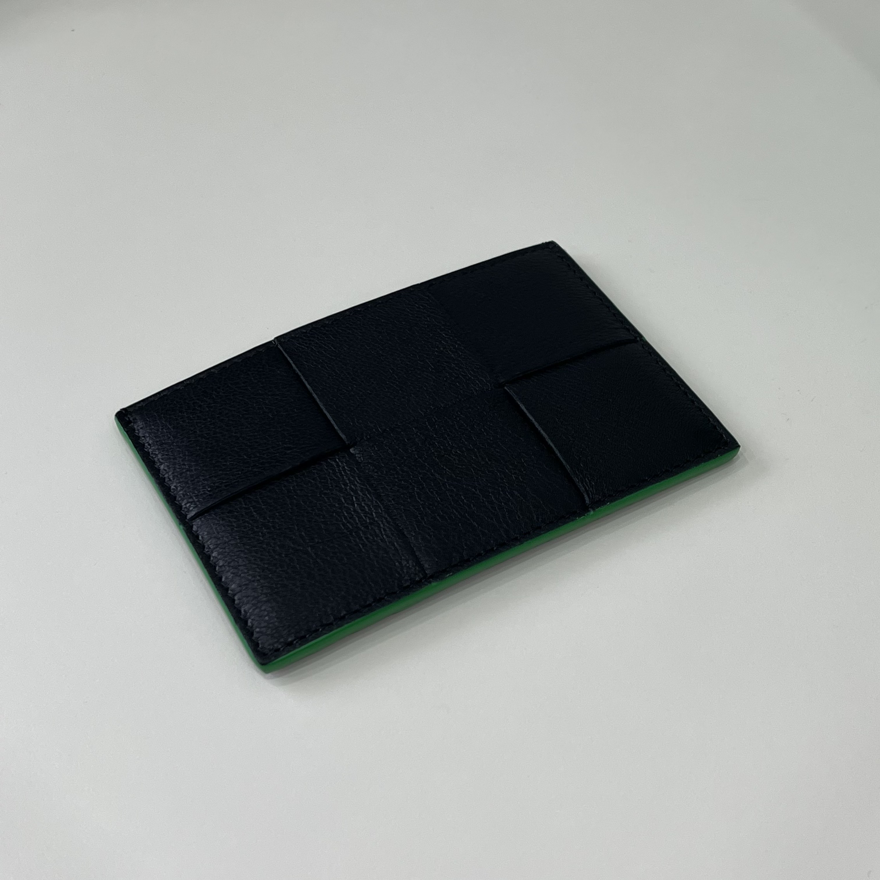 - 그레인 가죽 소재를 인트레치오 위빙으로 완성한 카드 케이스